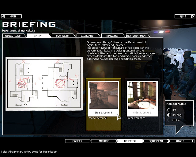 No matter what you do from that point forward you will not advance in Elite Mode, even if the mission is marked as “Completed” (which will be in red lettering signifying failure). As we all know from the famous X-Files episode “Darkness Falls”, failure is not an option. At least not when playing SWAT 4 on Elite Mode, so here I will actually try to provide a semi-walkthrough.